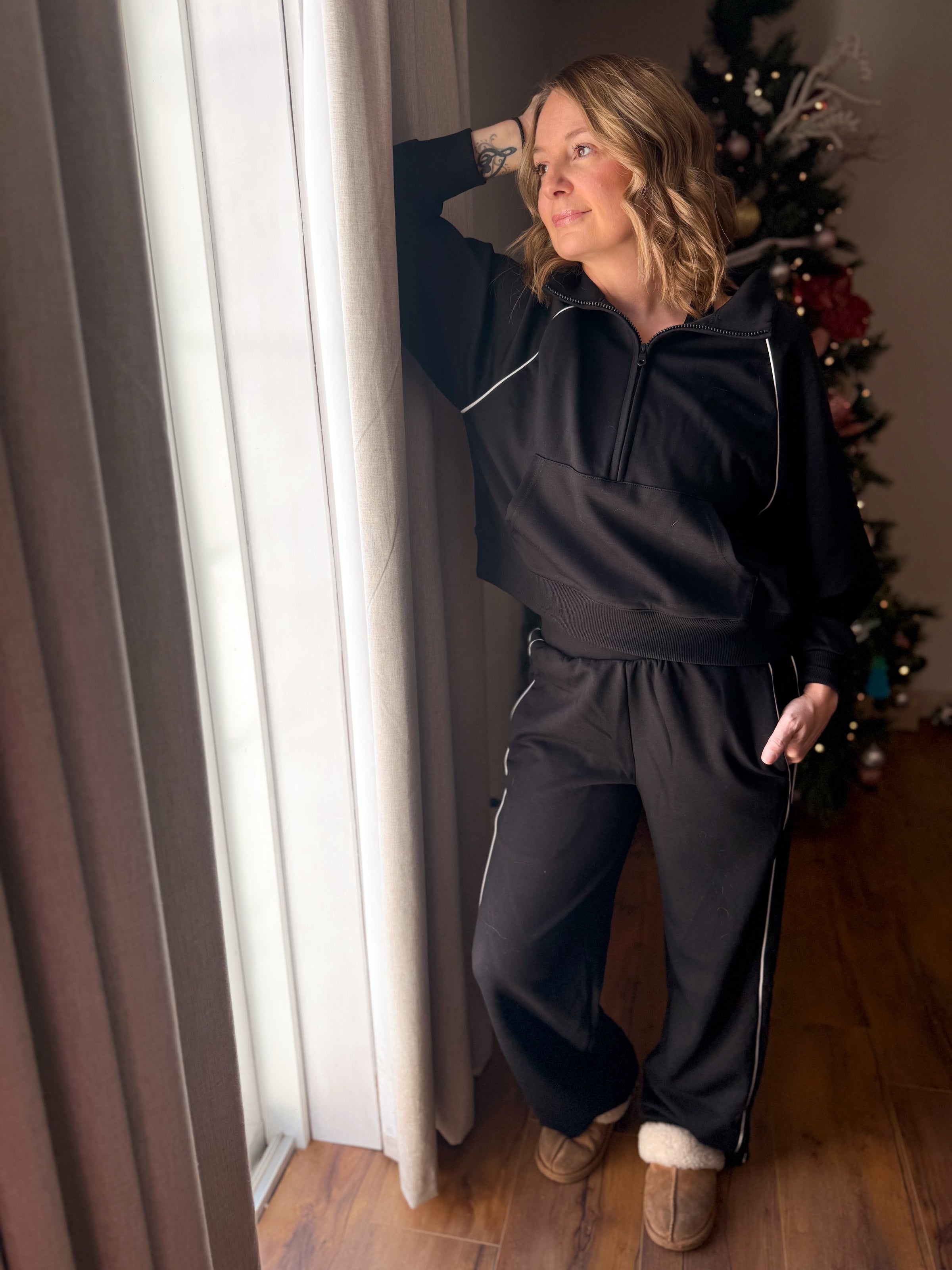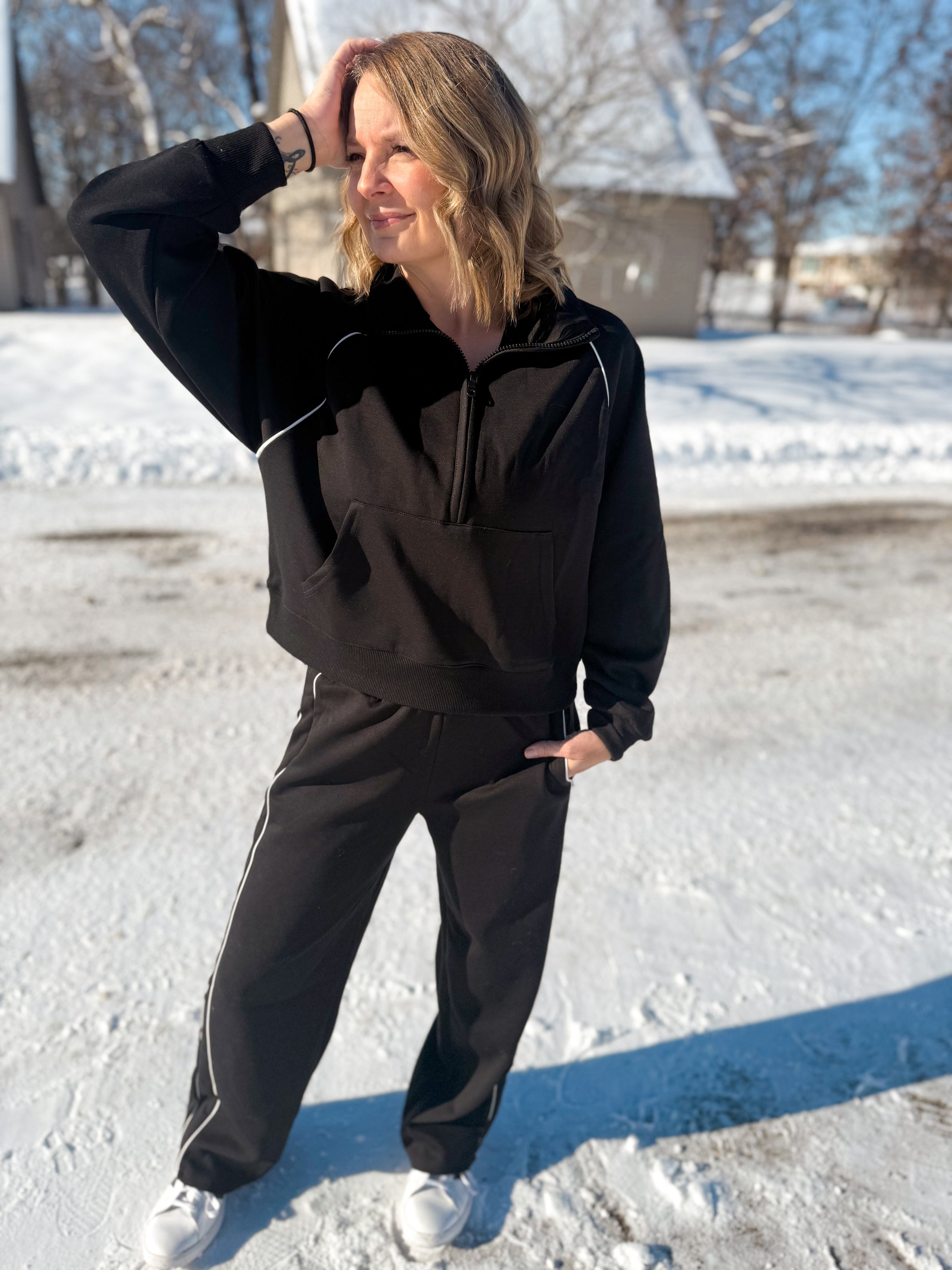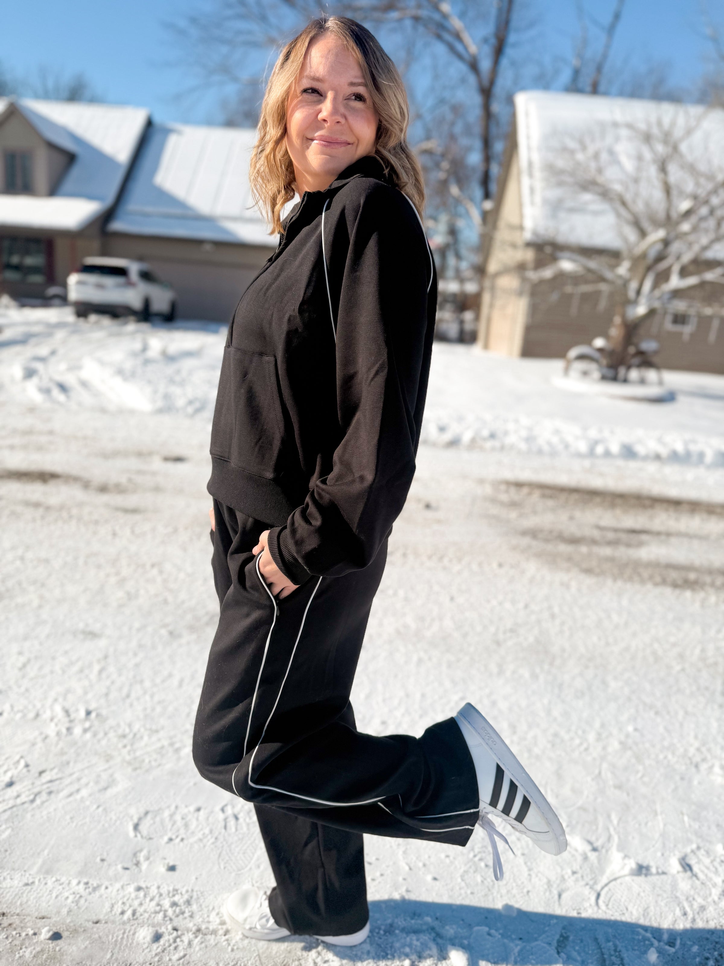 Elevate your athletic wardrobe with these sophisticated wide-leg pants, designed for those who refuse to compromise on style or comfort. Featuring refined piping details that add an upscale touch, these pants deliver the soft, breathable fabric you need for movement without sacrificing elegance. Perfect for transitioning from gym to street, they offer a polished silhouette that makes a statement. Experience the perfect blend of performance and fashion-forward design.
