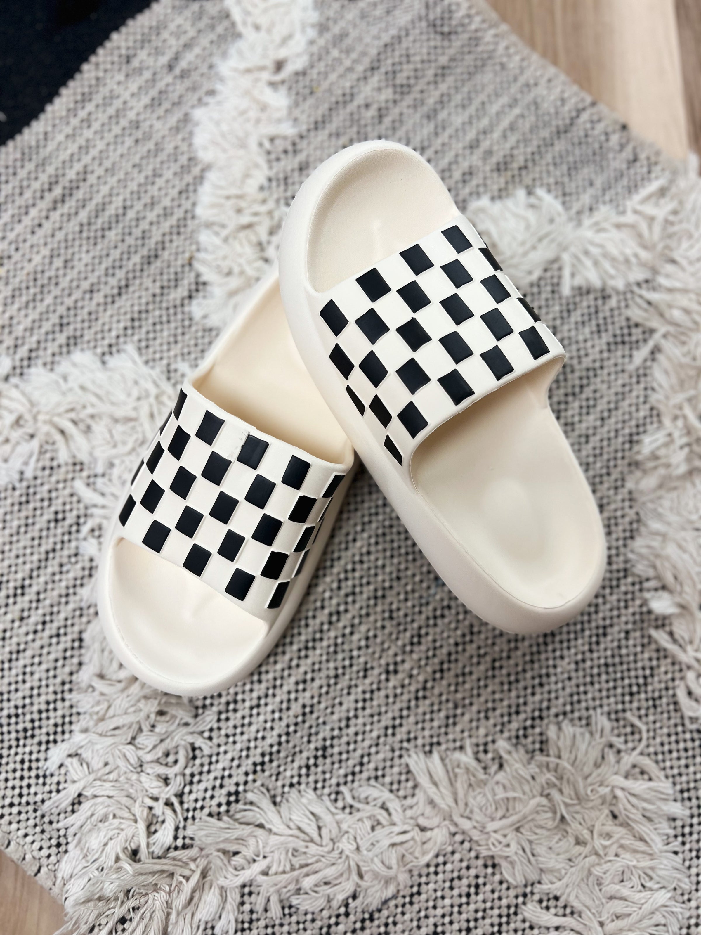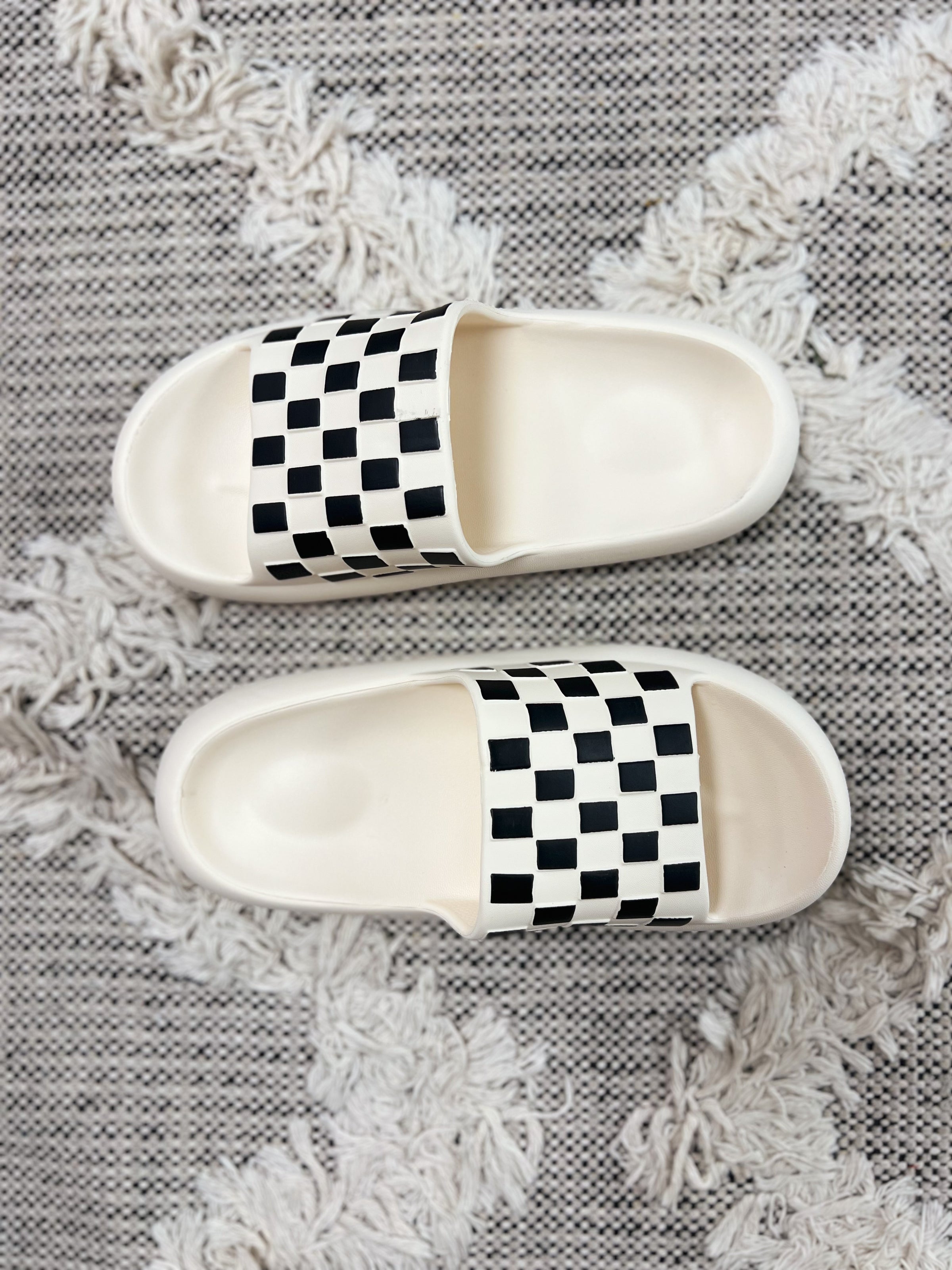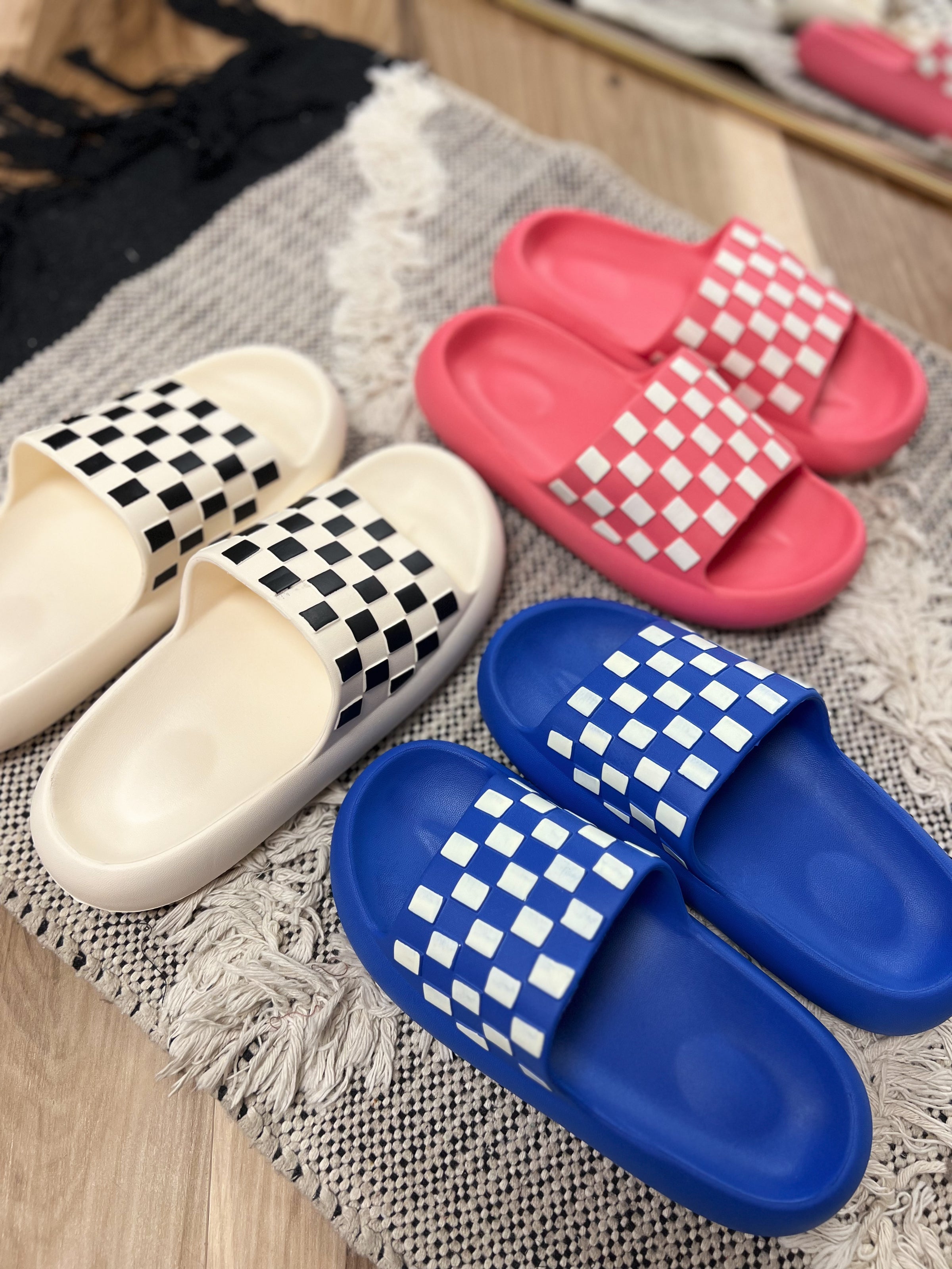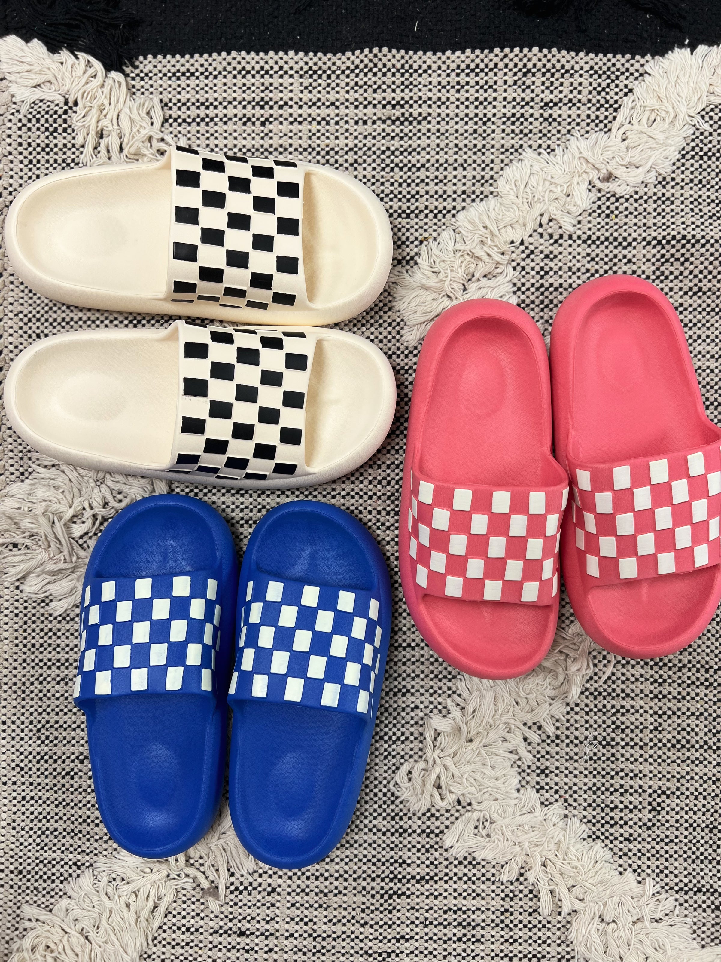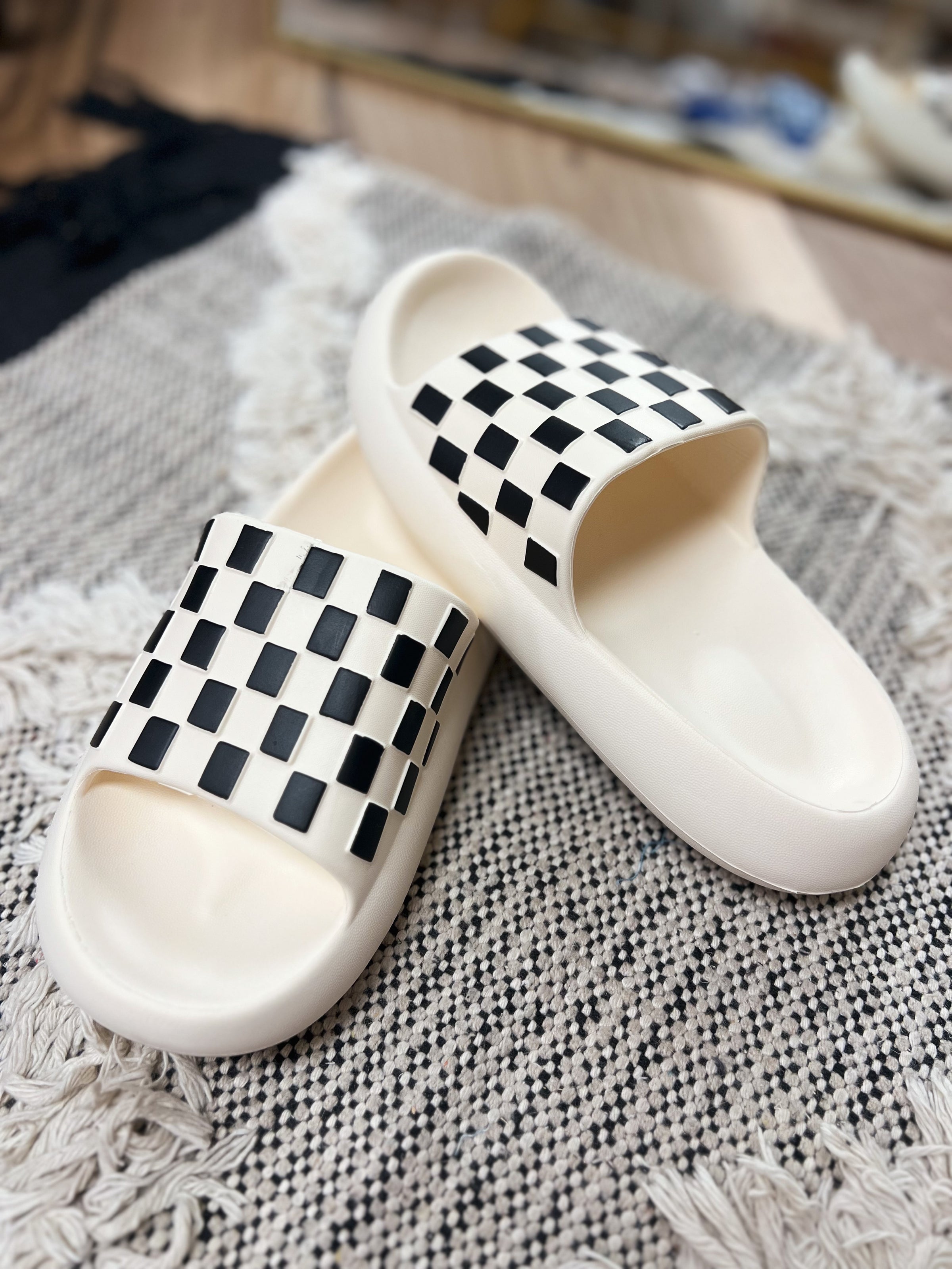 Step into comfort and style with our Non Slip Checkered Slides. Featuring a bold checkered pattern that's undeniably on-trend, these slides deliver shock-absorbing support for all-day wear. The non-slip sole keeps you secure on any surface, while the cushioned footbed cradles your feet in comfort. Perfect for lounging at home or running errands, these versatile slides combine contemporary design with practical performance. Slip them on and experience the perfect balance of fashion and function.