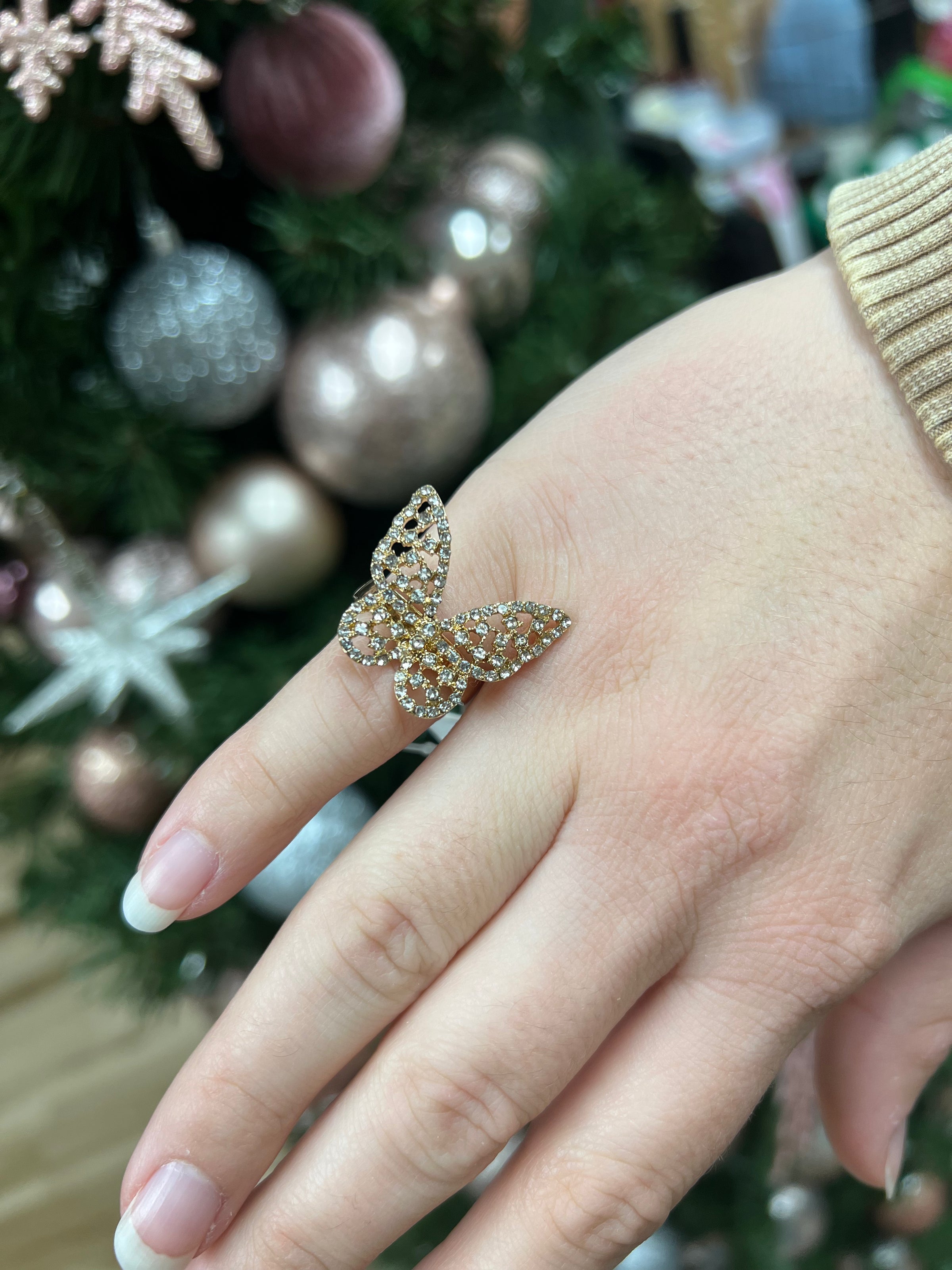 Add some sparkle to your look with our Butterfly Rhinestone Ring! This unique ring features a delicate butterfly design filled with dazzling rhinestones. Perfect for any occasion, this ring will make a statement and elevate any outfit. Be bold and fly away with this stunning ring!