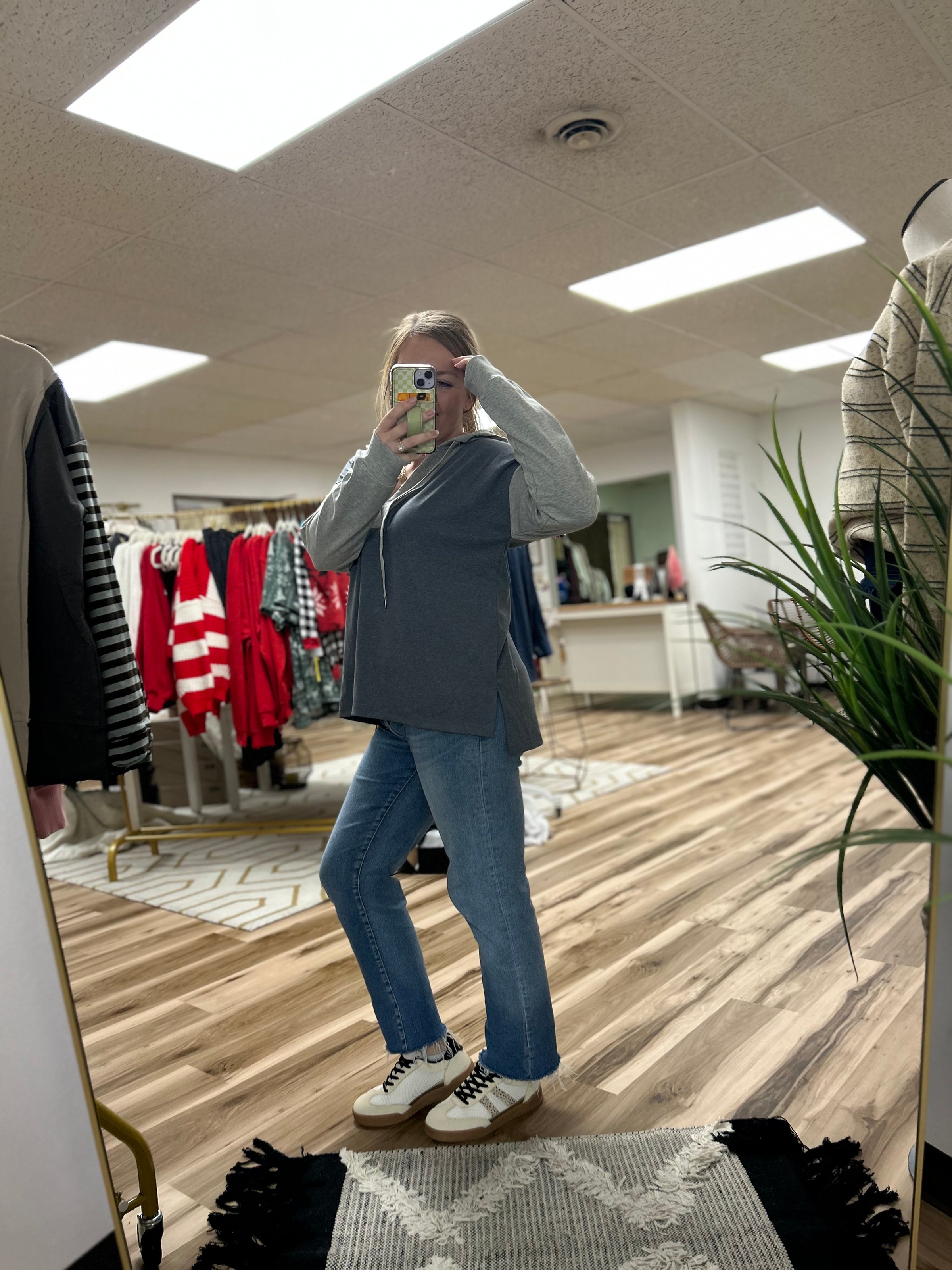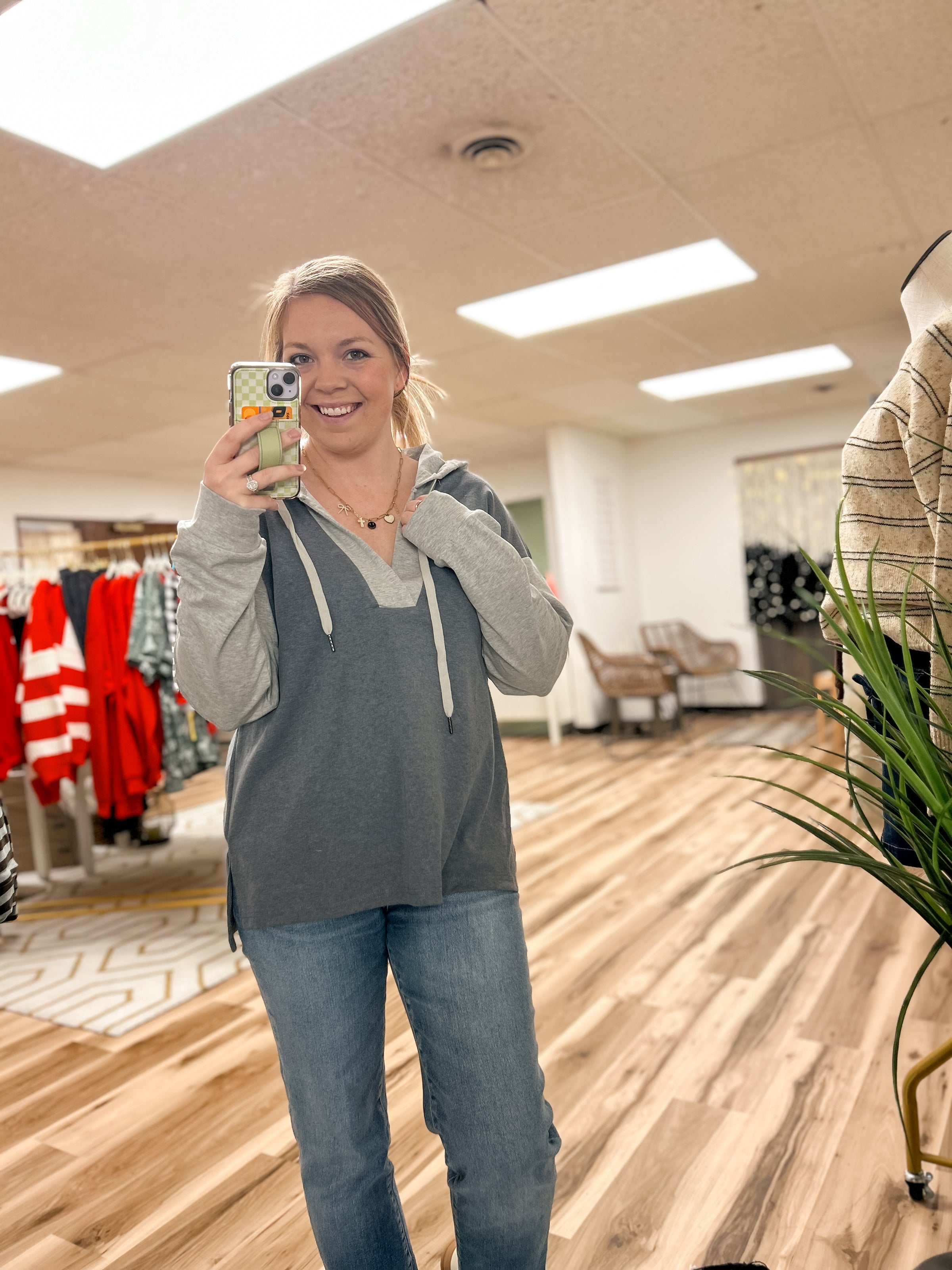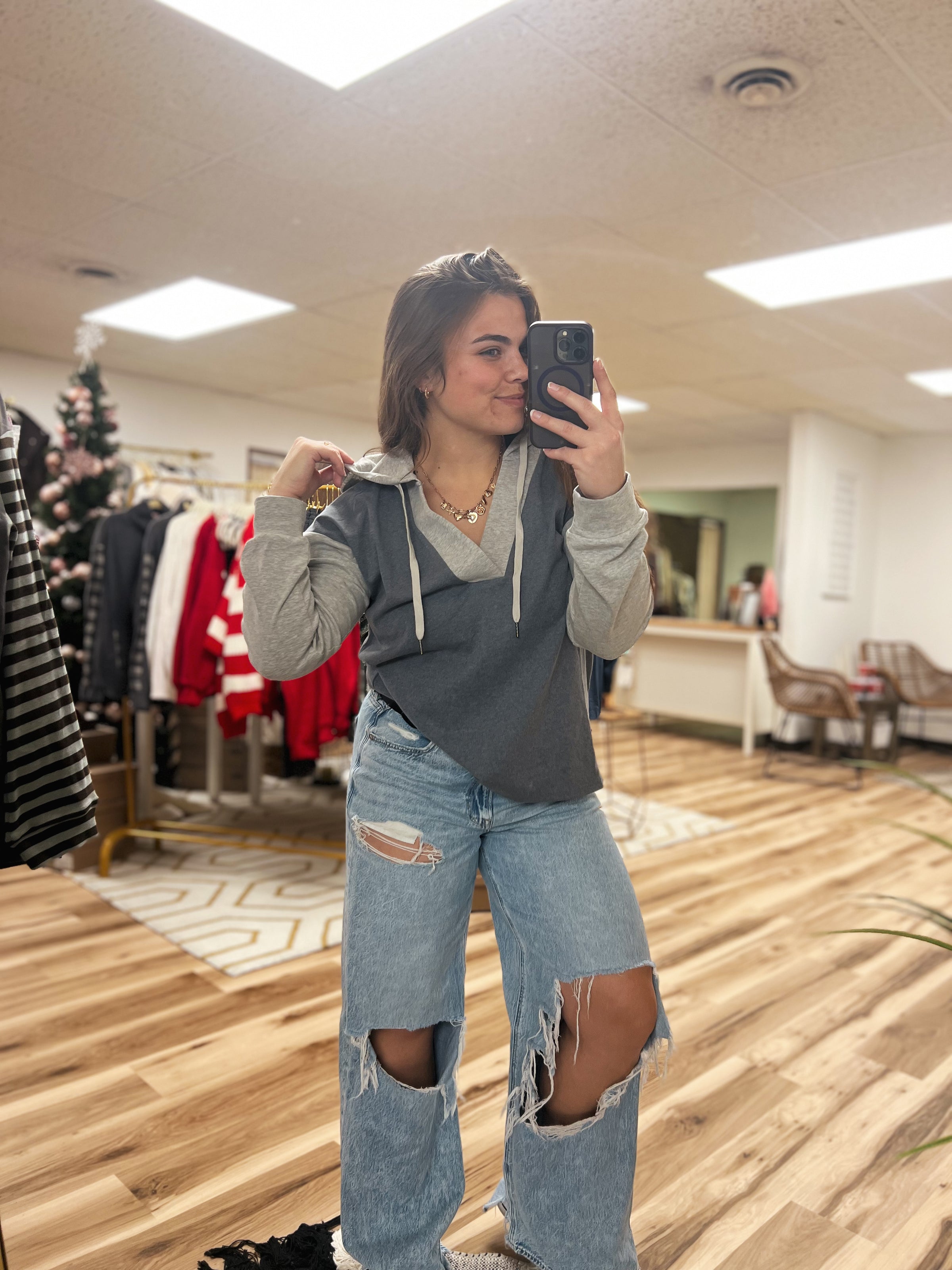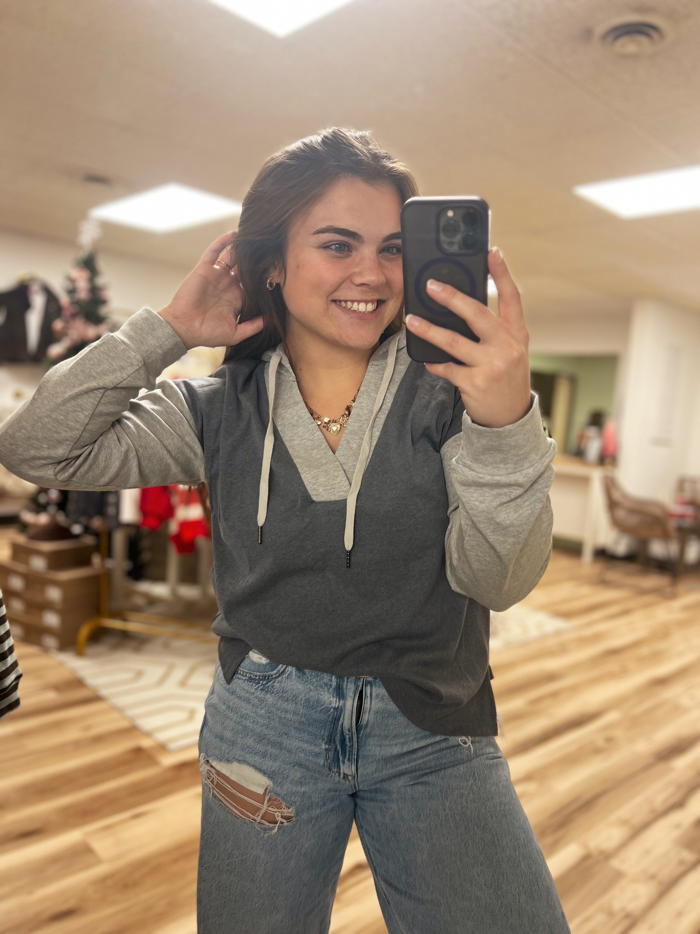 Effortlessly take on your busy mom life with our Color Block Hooded Sweatshirt! With its lightweight design, v-neck style, and trendy color block pattern, this casual wear is perfect for running errands and wearing all day long. Stay stylish and comfortable with our must-have hoodie.