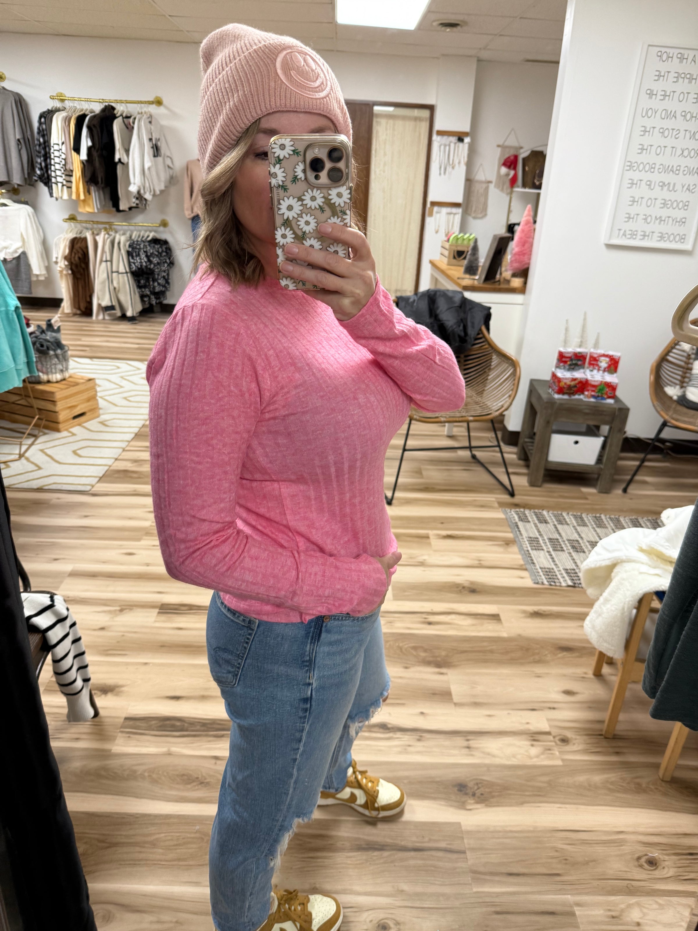The Skie Ribbed Long Sleeve Top is your go-to piece for effortless versatility. Crafted from soft, stretchy fabric, this form-fitted design hugs your curves in all the right ways while the ribbed texture adds visual interest and dimension. Perfect for layering under jackets or wearing solo, it transitions seamlessly from day to night. The long sleeves provide coverage without bulk, making it an essential wardrobe staple that works with everything from jeans to skirts. Comfortable enough for all-day wear, this top delivers style and functionality in one chic package.