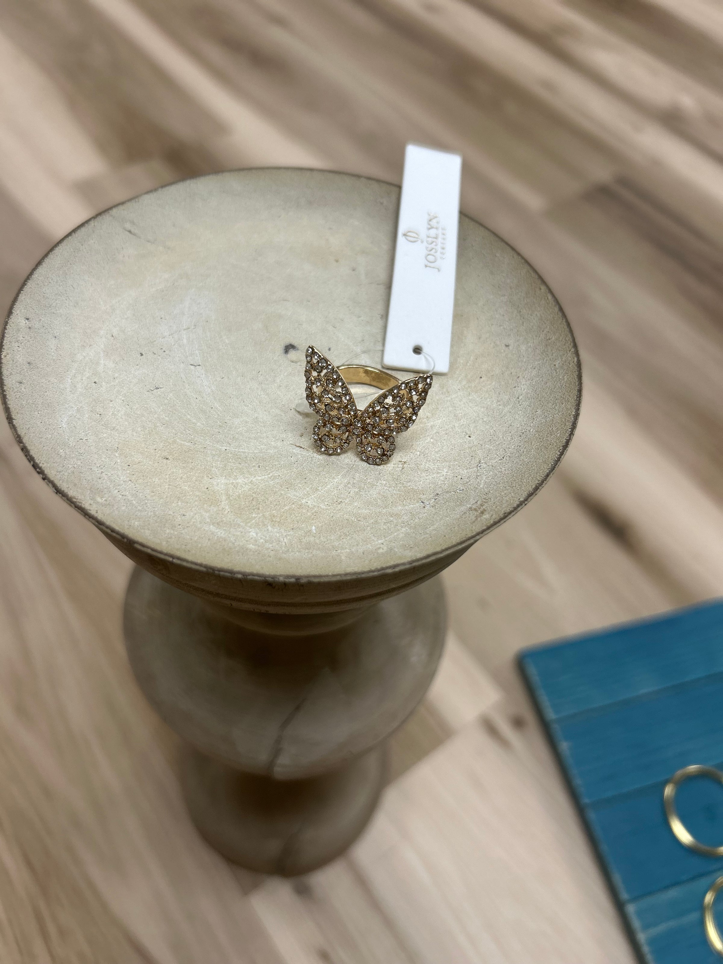 Add some sparkle to your look with our Butterfly Rhinestone Ring! This unique ring features a delicate butterfly design filled with dazzling rhinestones. Perfect for any occasion, this ring will make a statement and elevate any outfit. Be bold and fly away with this stunning ring!