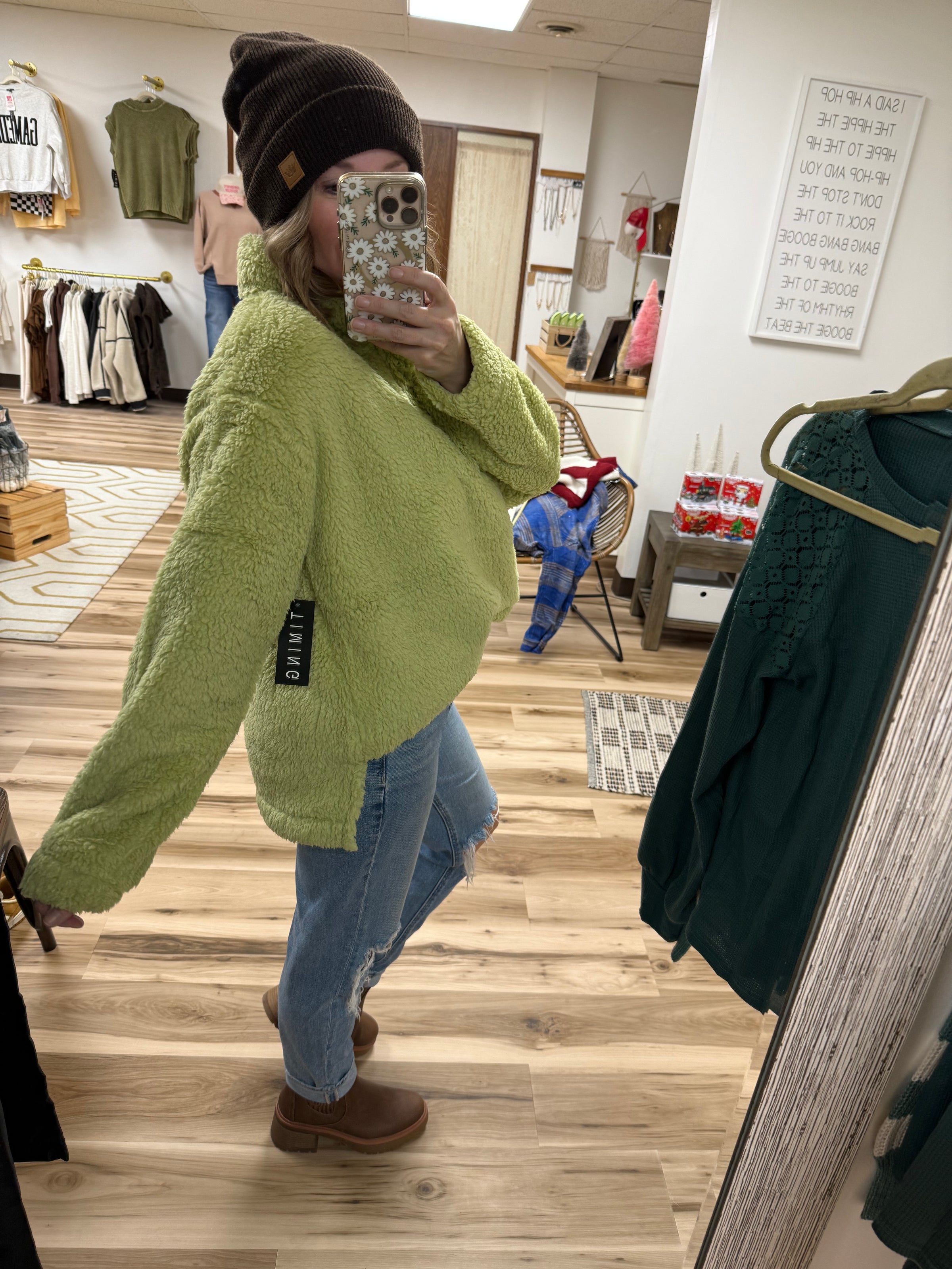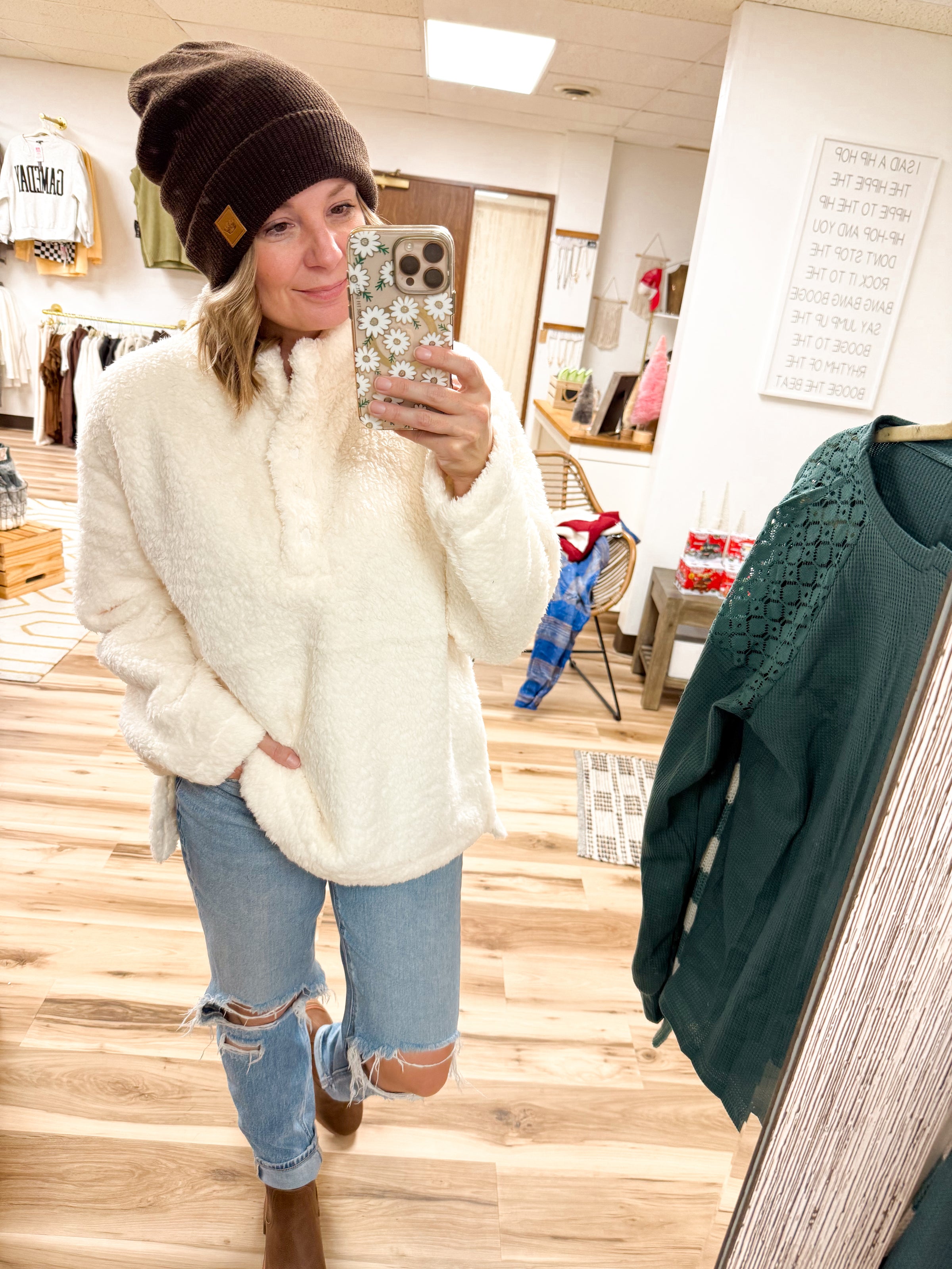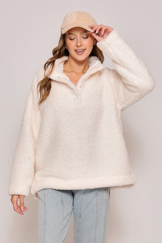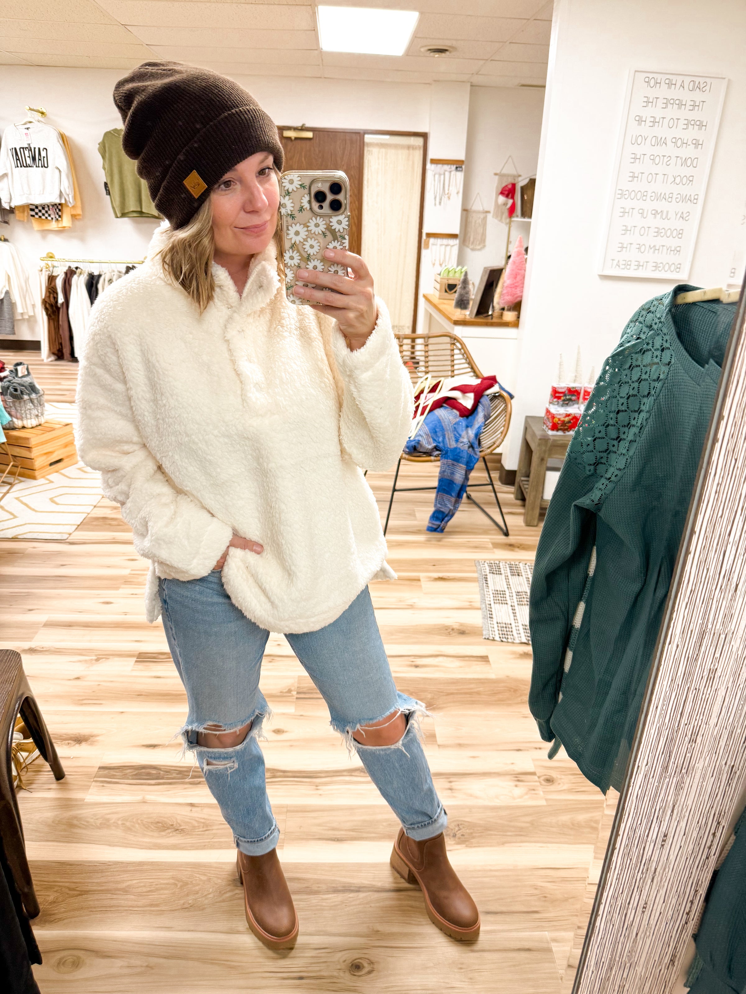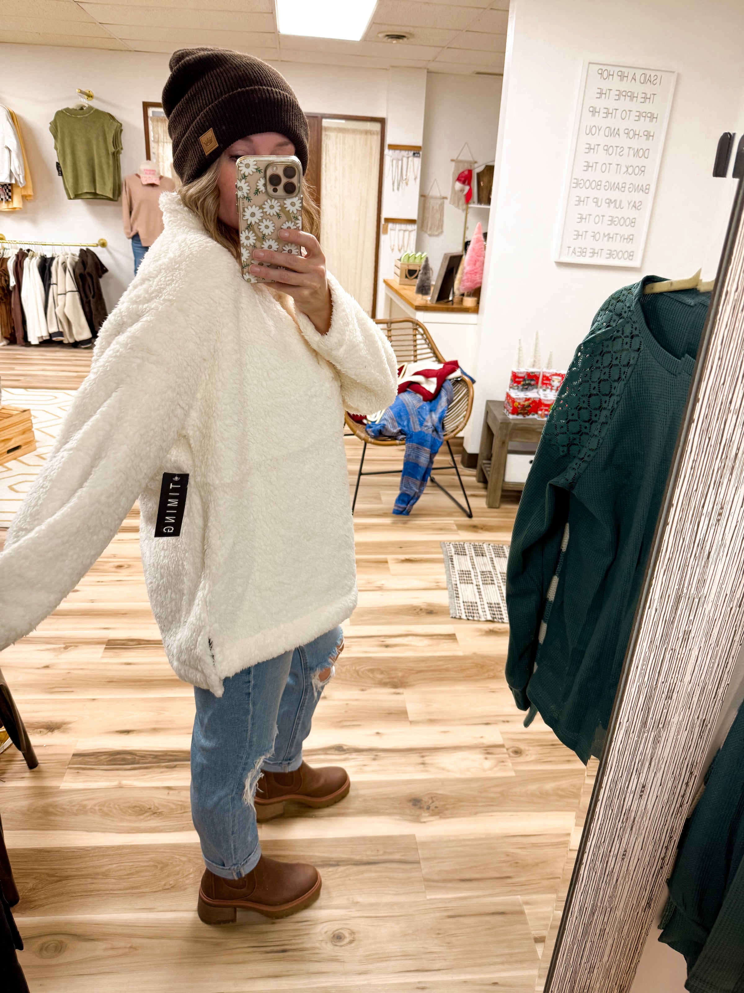Wrap yourself in ultimate comfort with the Carrie Sherpa Pull Over. Crafted from incredibly soft sherpa material that feels like your favorite blanket, this relaxed-fit pullover is designed for pure coziness. Perfect for lounging at home, layering on chilly days, or effortless casual wear, it delivers the plush softness you crave without sacrificing style. Experience the luxury of cloud-like comfort that makes you never want to take it off.