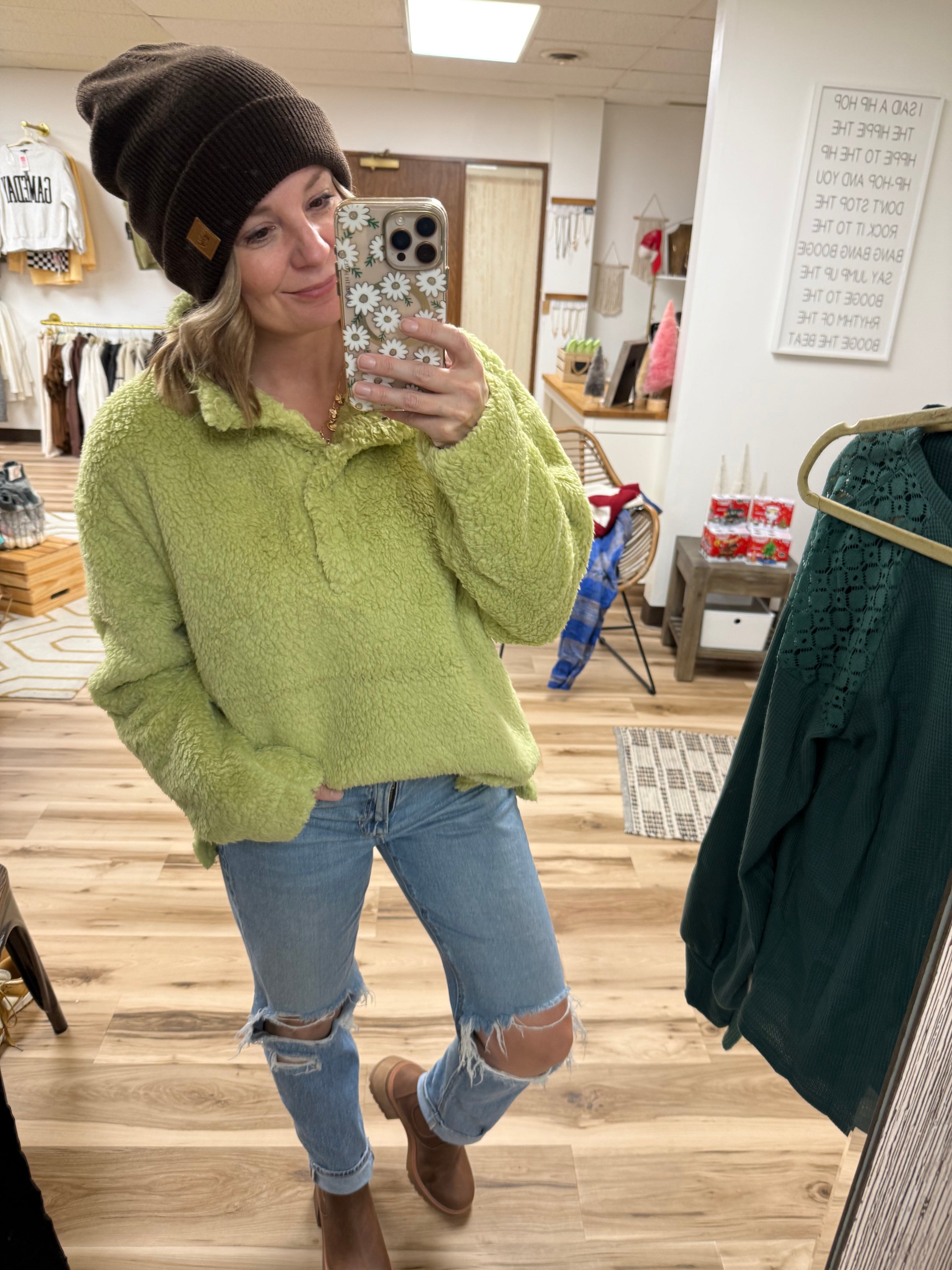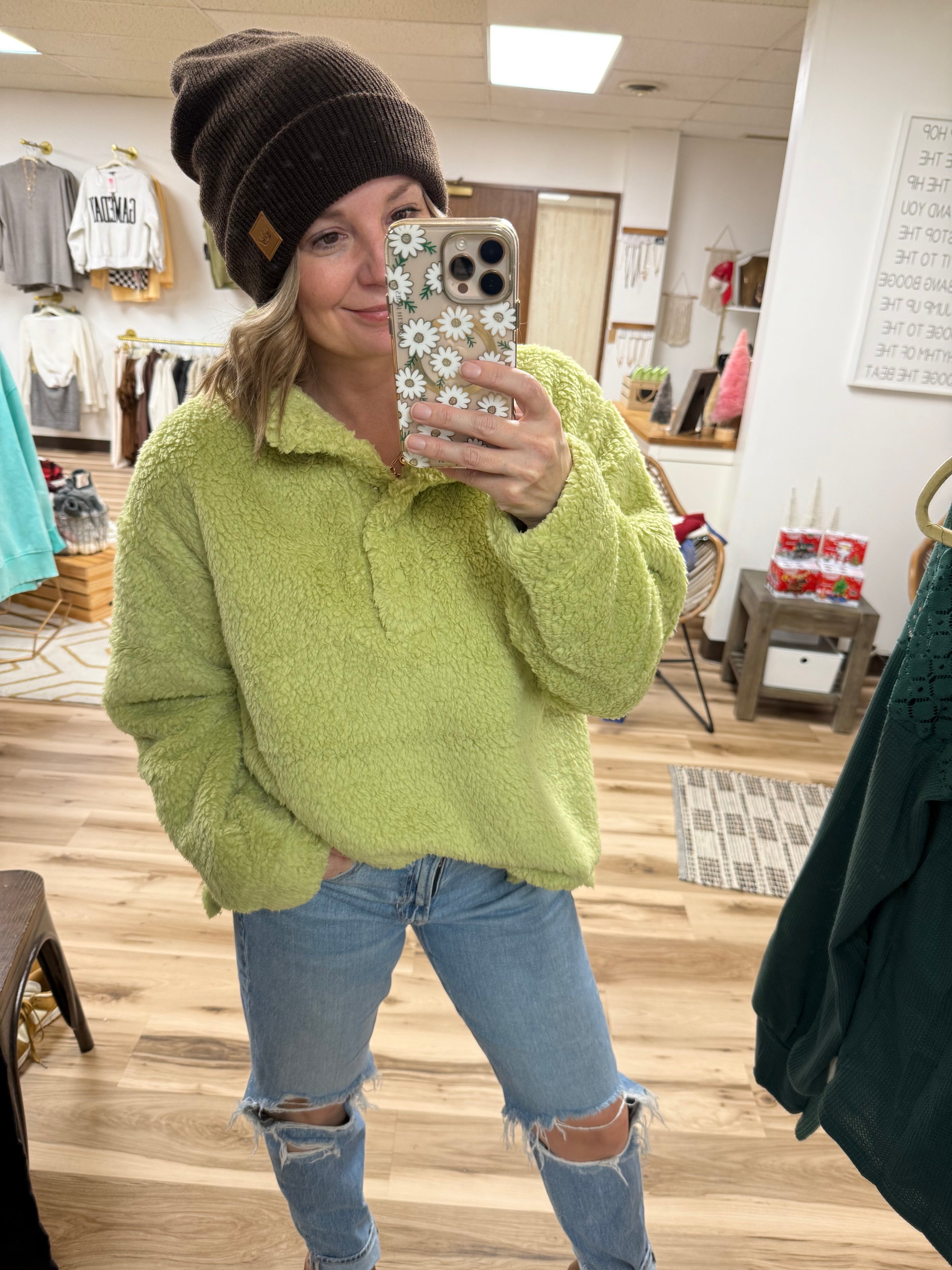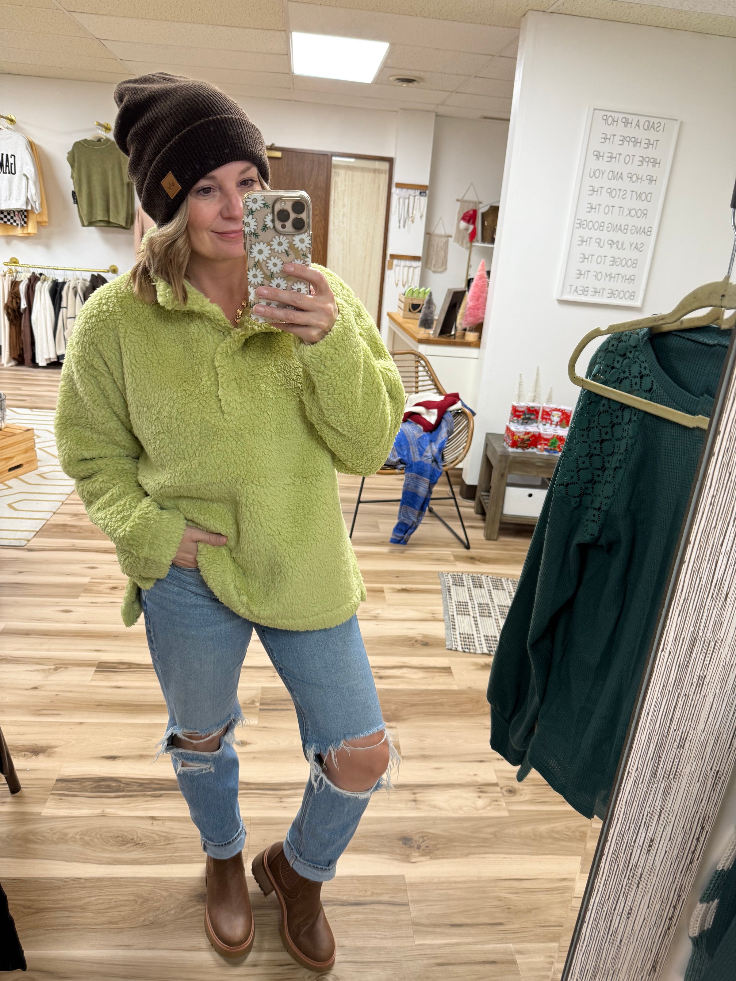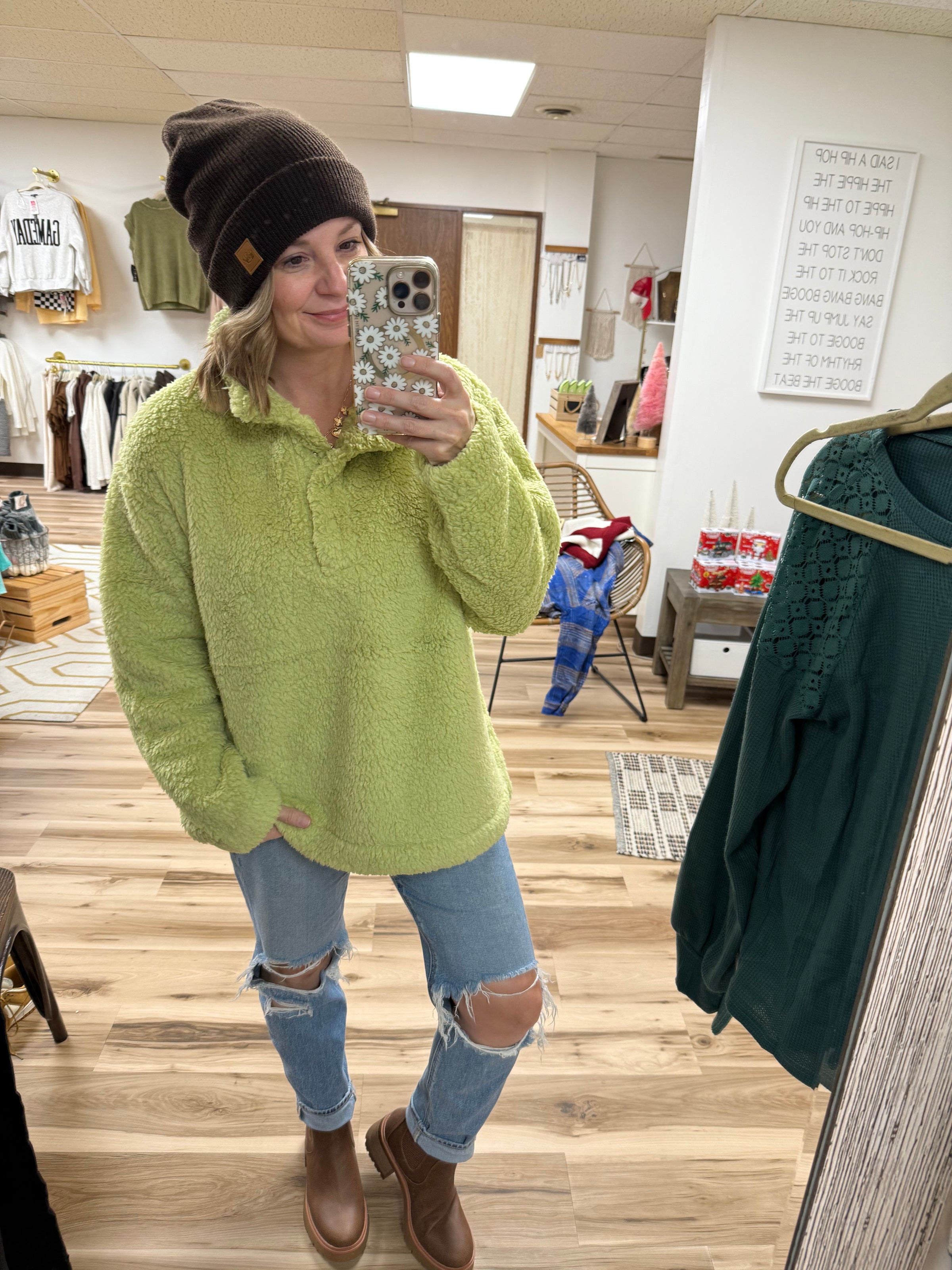 Wrap yourself in ultimate comfort with the Carrie Sherpa Pull Over. Crafted from incredibly soft sherpa material that feels like your favorite blanket, this relaxed-fit pullover is designed for pure coziness. Perfect for lounging at home, layering on chilly days, or effortless casual wear, it delivers the plush softness you crave without sacrificing style. Experience the luxury of cloud-like comfort that makes you never want to take it off.