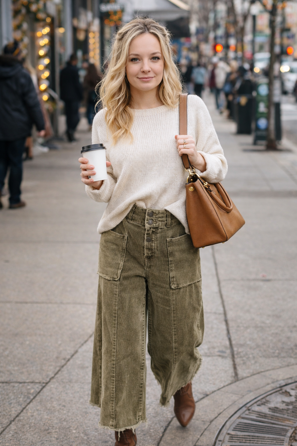 - Cropped Corduroy Fray Hem Pants