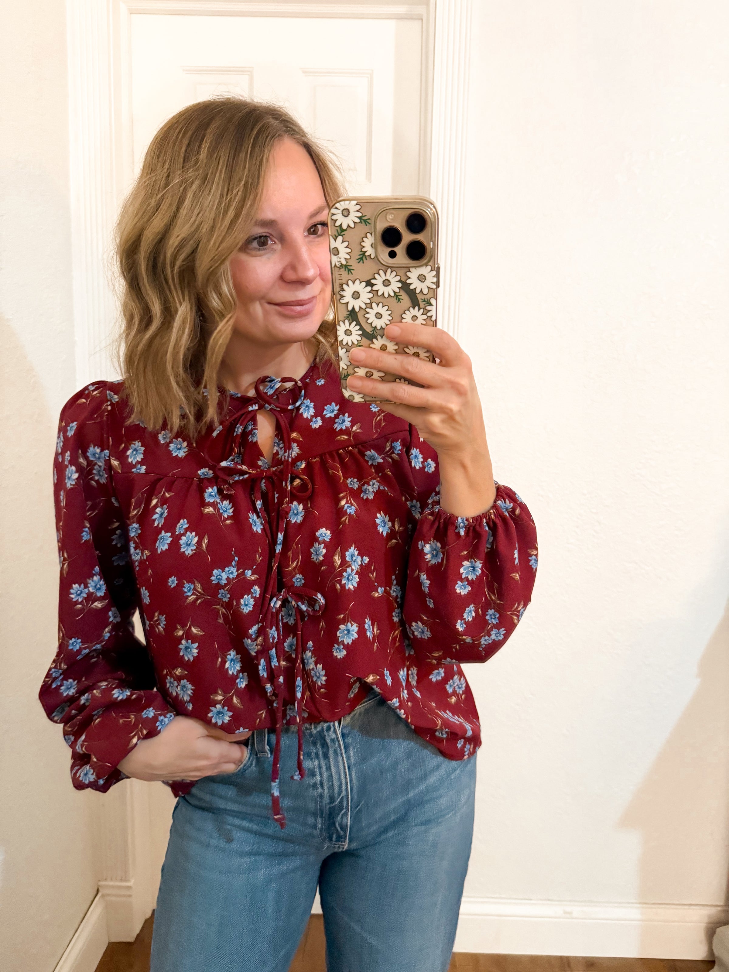 This Floral Burgundy Blouse is perfect for both work and a night out. Its elegant floral design adds a touch of boho flair, while still being appropriate for a professional setting. Made with comfort in mind, you'll feel confident and stylish all day long.