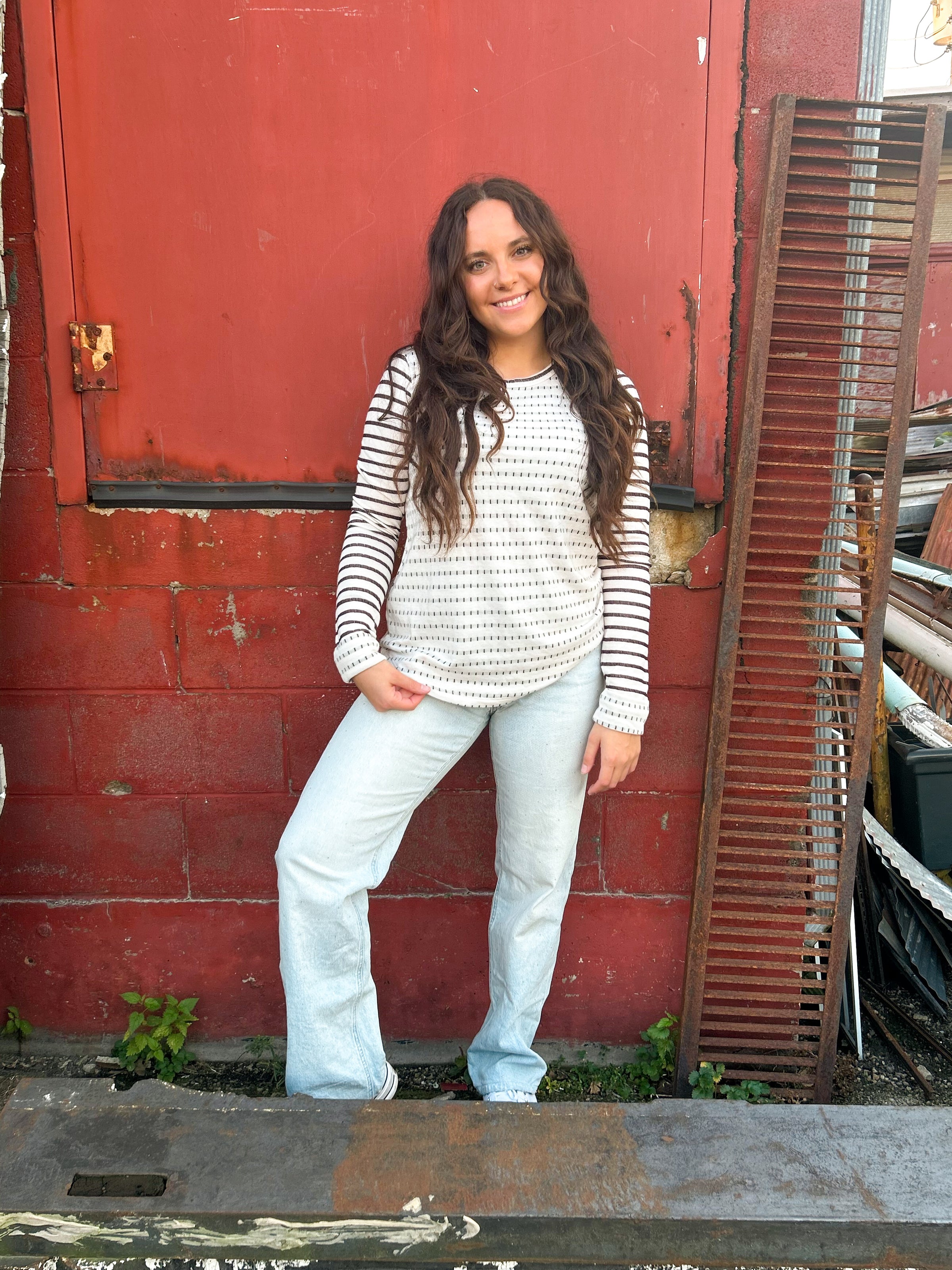 Experience comfort and style with our Sonya Striped Lightweight Sweater. Made with soft, stretchy fabric, this classic crew neck sweater is perfect for layering. Its lightweight design ensures comfort without sacrificing style. Add a touch of class to any outfit with its timeless striped pattern.