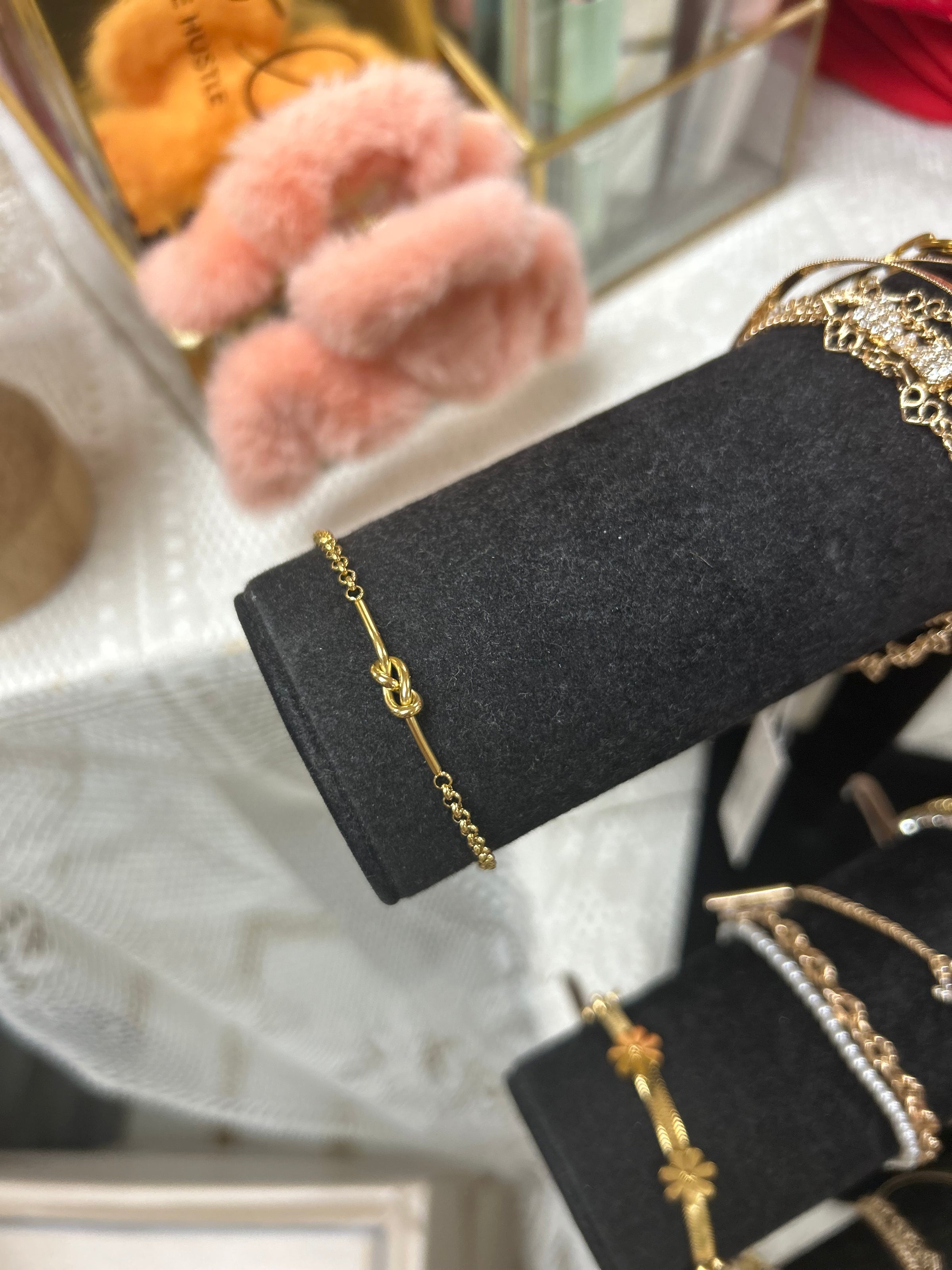 Introducing our Steel Non Tarnish Knot Bracelet! This delicate bracelet features a beautiful knot design in gold, perfect for adding a touch of elegance to any outfit. Say goodbye to tarnishing and hello to long-lasting beauty with this timeless piece. Elevate your style with our knot bracelet today!