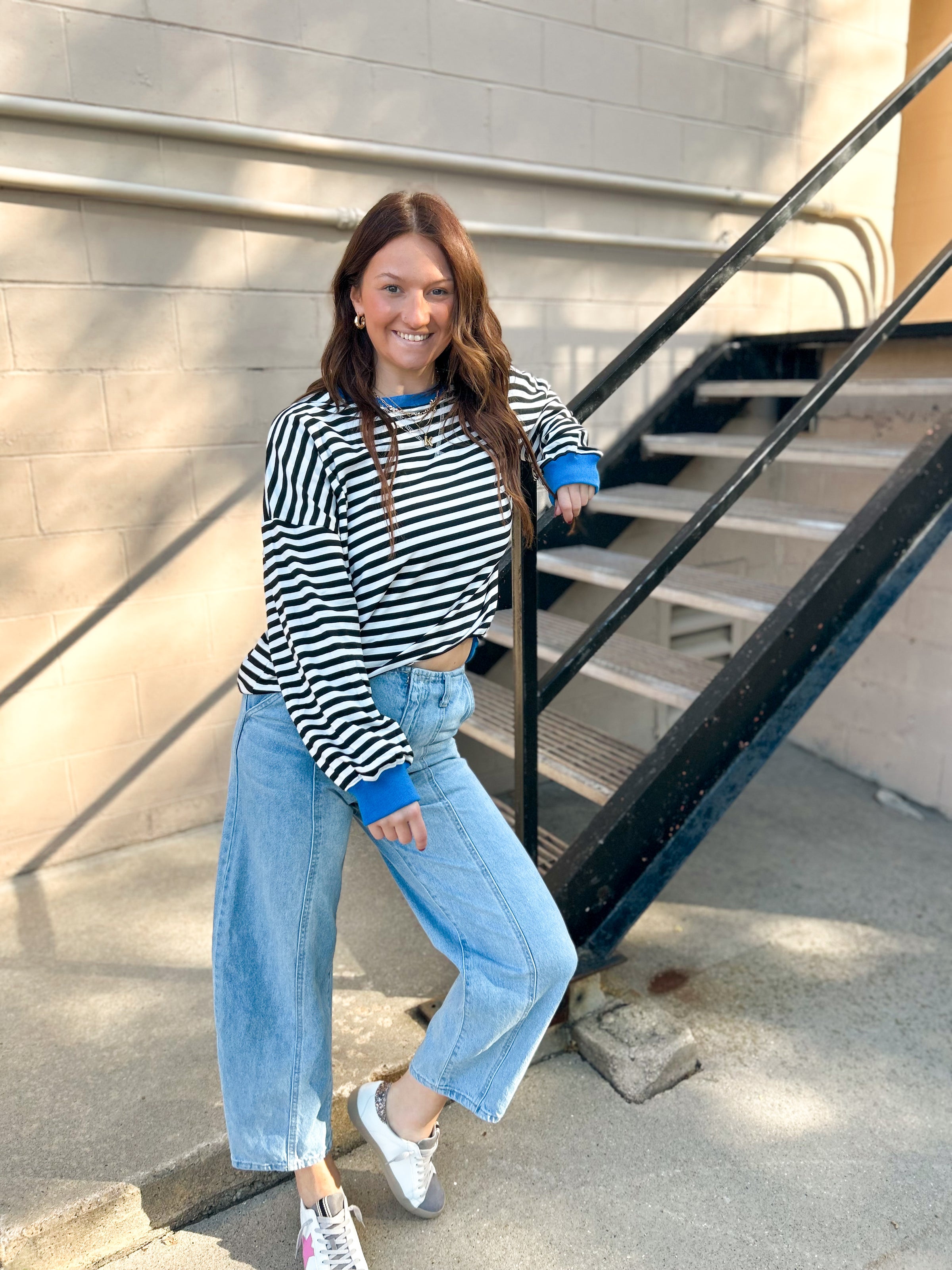 Stay effortlessly stylish with the Wanda Striped Pullover Crew! Its oversized fit and soft fabric make it your go-to for cozy, casual days. Whether you're running errands or relaxing at home, the playful stripes add a fun touch to your everyday look while keeping comfort front and center.