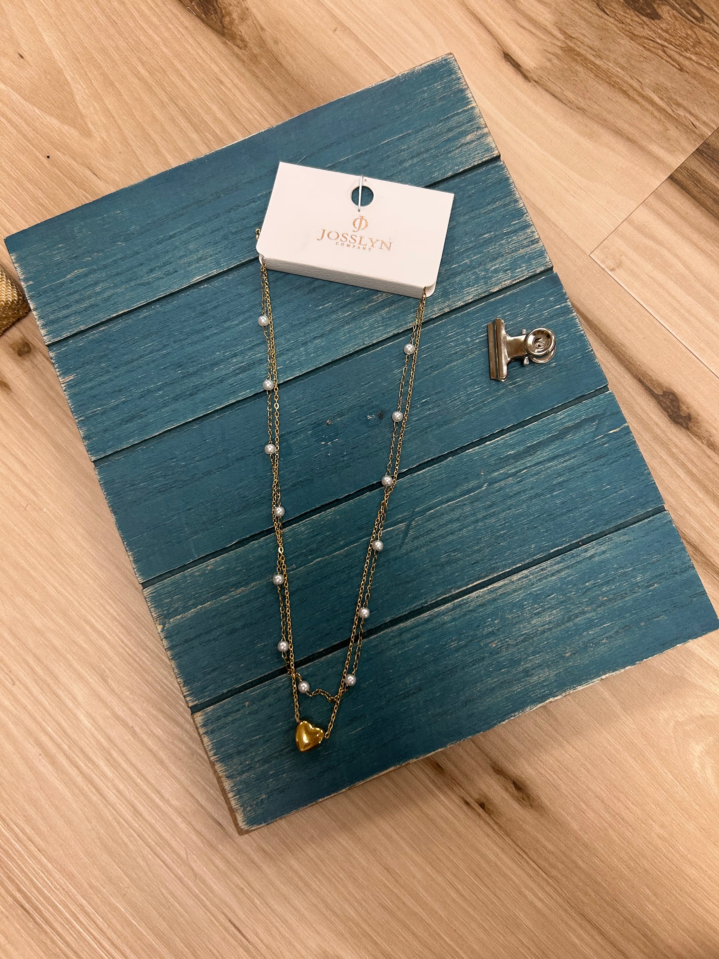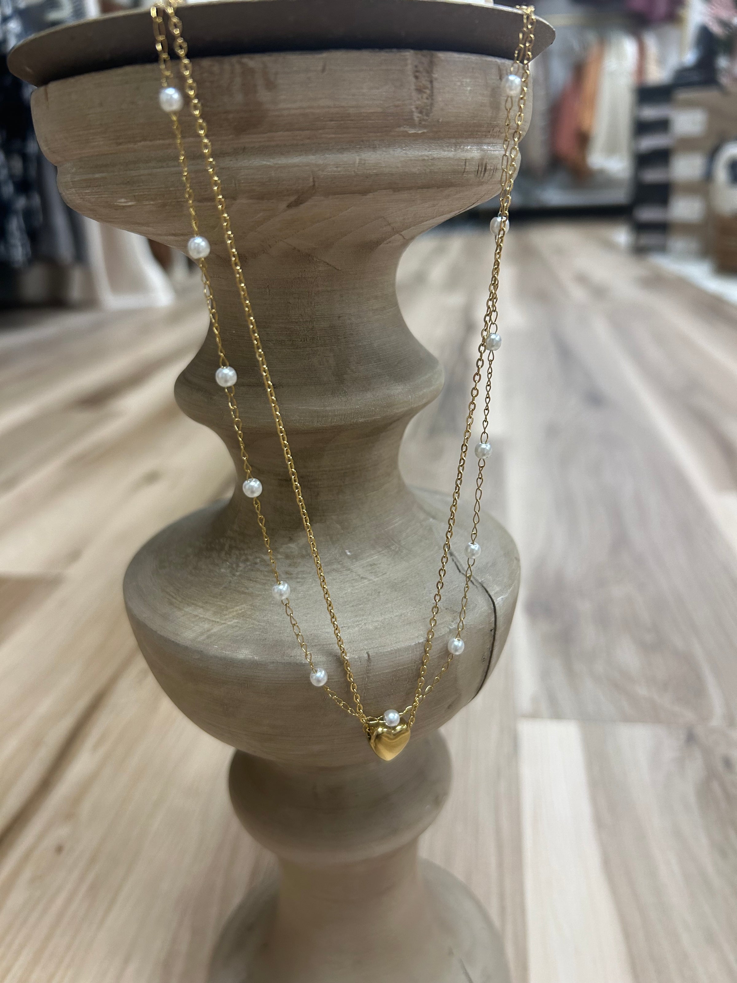 "Add shine to your accessory game with our 18K Stainless Steel Gold Layered Necklace! This statement piece features a stunning gold pendant and pearl necklace to elevate any outfit. Perfect for a touch of elegance and playfulness. Get ready to turn heads!"